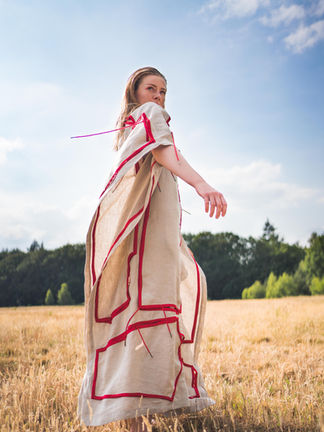The concept is about claiming a space with this message, combining spatial installation and fashion. With fashion I show the literal facts, with the installation I use a symbolic landfill and with the performance I tell the story of demolishing the wasteland, that can be deconstructed into three dresses. In the hemp fabric I cut out and highlight the basic convection patterns of a dress, jacket and pants factually to show the pre-consumer waste surrounding it. The patterns you can open and close (construct/deconstruct) to use for your body and to clarify the message even more. When you combine the three garments it evokes an even bigger statement that can be used for exhibitions as well. But for individual use It can also be used to hang on your wall at home as a conversation piece.